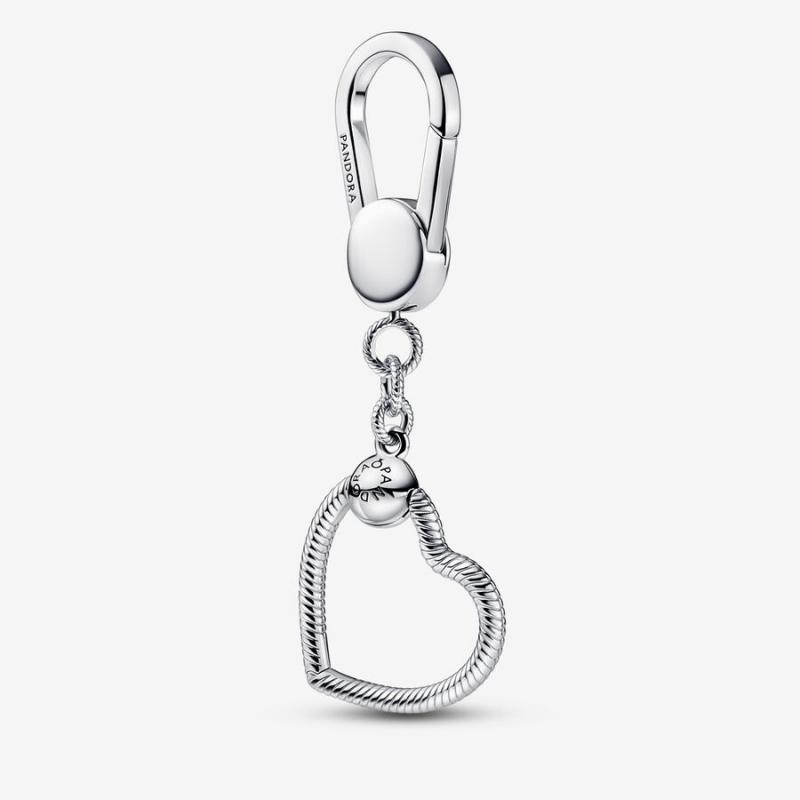 Sterling silver bag charm holder with small Pandora heart O pendant
