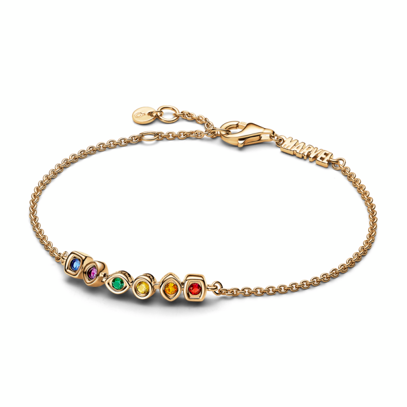 Браслет Marvel с покрытием из 14-каратного золота с красными, оранжевыми, желтыми, зелеными, фиолетовыми и синими кристаллом