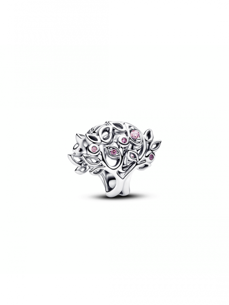 Family tree sterling silver charm with fancy pink cubic zirconia and fuchsia rose crystal