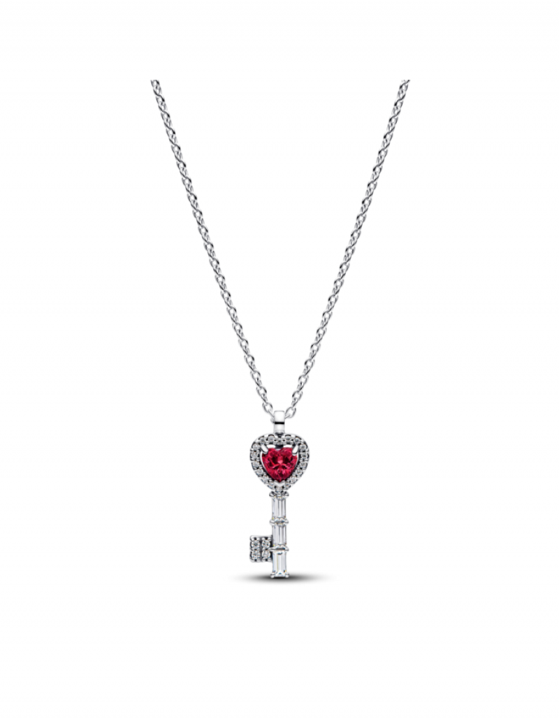 Heart key sterling silver collier with cherries jubilee red crystal and clear cubic zirconia