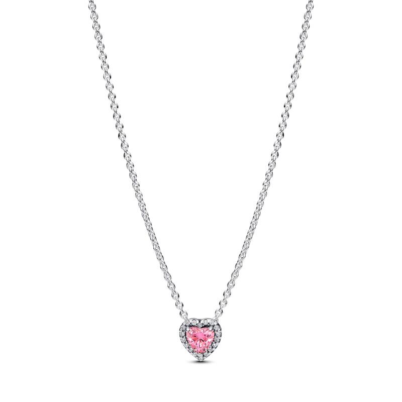 Heart sterling silver collier with fancy pink and clear cubic zirconia